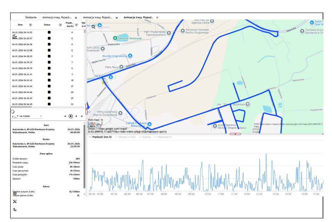 Dane z systemu monitoringu GPS z dnia 04.01.2026 r.