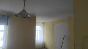 - zeskrobanie i zmycie starych farb ze ścian i sufitów
